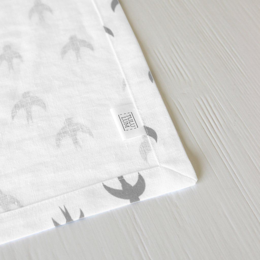 Prostírání / běhoun lněný s autorským potiskem BIRDS